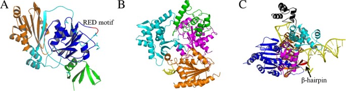 ),但目前尚未解析其晶体结构,详细运动机制仍不明确。产品关联:文献未提及具体实验产品,领域常规使用透射电子显微镜、蛋白-蛋白相互作用检测试剂盒、DNA末端加工活性检测体系等。