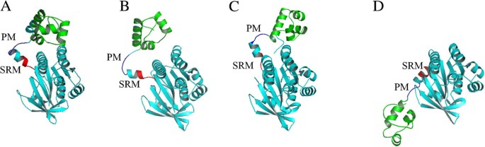 实验目的是揭示RadA介导同源重组的分子机制,明确ATP结合水解与构象变化的关联。方法细节包括采用X射线晶体衍射技术解析不同核苷酸结合状态下RadA的多聚体结构(环、右手丝状体、过旋右手丝状体、左手丝状体),通过生化实验检测ATP酶活性、DNA链交换活性,分析金属离子对RadA构象与活性的调控作用。结果解读:RadA在无ATP时形成环结构(用于储存以减少ATP消耗),ATP结合后形成右手丝状体,结合单链DNA形成核蛋白丝;ATP水解驱动亚基间发生约30°的旋转,通过亚基旋转基序(SRM)的构象变化实现丝状体的构象转换(
