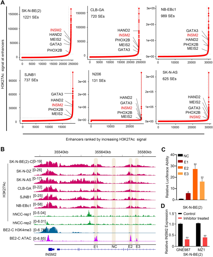 实验目的:鉴定神经母细胞瘤中受超级增强子调控的INSM2基因,明确其转录调控机制。