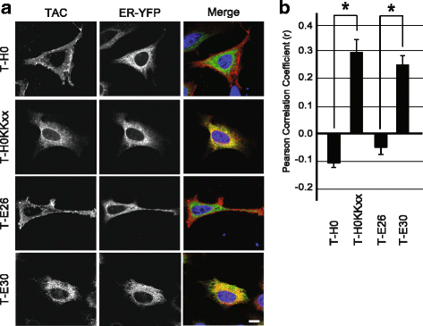 产品关联:实验所用关键产品:抗Tac抗体(7G7)、内质网-YFP标记物、共聚焦显微镜(Zeiss LSM700)、ImageJ分析软件。