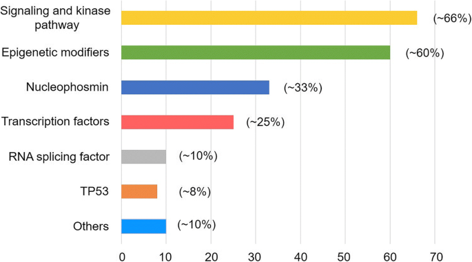 本文作为系统性综述,研究目标为全面总结AML的分子图谱特征及靶向治疗研究进展,核心科学问题是明确不同分子突变及共突变组合的预后价值,以及对应靶向治疗的临床应用潜力,技术路线为基于已发表的大队列临床研究、临床试验数据,按分子功能分组梳理各突变亚型的特征、预后意义及治疗进展,形成完整的AML分子分型与靶向治疗框架。