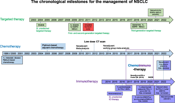本环节的核心目标是明确精准新辅助治疗的发展背景与定位,方法是通过时间线整合领域内的关键里程碑事件,梳理从化疗时代到靶向、免疫治疗时代的转变,以及新辅助治疗从化疗到精准治疗的演进过程。结果显示,1990年代化疗成为NSCLC的基础治疗,2004年EGFR酪氨酸激酶抑制剂(TKI)开启靶向治疗时代,2015年免疫检查点抑制剂(ICI)获批用于晚期NSCLC,2022年纳武利尤单抗联合化疗获批成为可切除NSCLC的新辅助标准治疗,体现了精准治疗向早期NSCLC的延伸趋势。文献未提及具体实验产品,领域常规使用下一代测序(NGS)检测试剂盒、免疫组化(IHC)检测试剂等。