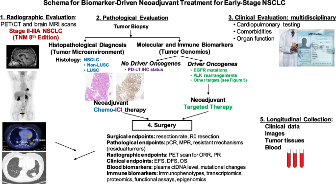 本文作为系统性综述,研究目标是为可切除NSCLC精准新辅助治疗的临床实施提供全面的现状梳理、挑战分析及未来展望;核心科学问题包括如何优化生物标志物检测以指导治疗选择、如何建立标准化的术前多学科评估体系、如何确定精准新辅助治疗的疗效评价指标;技术路线遵循“领域发展历程→现有治疗格局→术前评估体系→疗效评价与生物标志物→未来展望”的逻辑闭环,通过整合已发表的临床试验、回顾性研究及指南内容,形成系统性的综述结论。