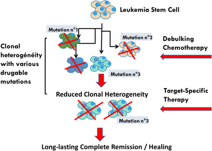 实验目的是全面总结现有AML靶向治疗的临床效果与耐药机制,明确传统治疗的核心瓶颈;方法细节是系统回顾IDH1/2、Hedgehog(Hh)、FLT3、BCL2四类靶向抑制剂的临床试验数据,包括完全缓解率、中位缓解持续时间、耐药相关分子特征;结果解读:IDH1抑制剂ivosidenib单药完全缓解率为22%,中位缓解持续时间6.5个月,部分患者虽实现分子学MRD阴性,但仍存在仅能通过特异性抗体检测到的IDH1突变细胞;FLT3抑制剂gilteritinib在复发/难治性AML中的完全缓解/部分缓解率为34%,但生存曲线在24个月后与化疗组趋同,提示无法根除耐药亚克隆;BCL2抑制剂venetoclax联合去甲基化药物的完全缓解/部分缓解率达73%,但FLT3-ITD突变患者对药物敏感性显著降低。产品关联:文献未提及具体实验产品,领域常规使用临床试验数据平台、分子生物学突变检测试剂。