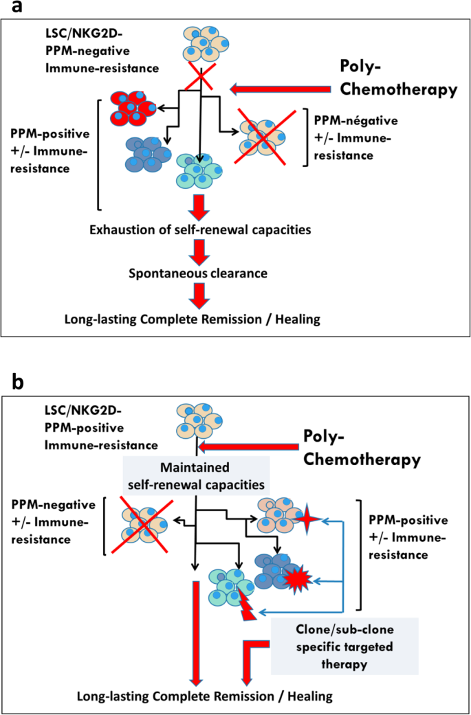 图2对比了不同预后分层下的治疗策略,强调靶向治疗对残留病的根除作用;
