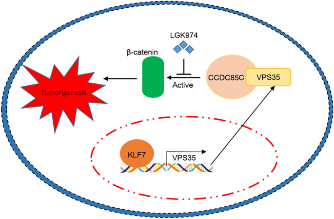 本研究的创新价值在于首次揭示了KLF7作为转录因子在肝细胞癌中高表达,并通过直接结合VPS35的启动子区域激活其转录表达,进而通过与CCDC85C相互作用激活β-连环蛋白信号通路,完善了肝细胞癌中该信号轴的调控网络;同时首次将CCDC85C与肝细胞癌的发生发展关联起来,填补了KLF7在肝细胞癌功能及VPS35上游调控机制的研究空白,为肝细胞癌的分子靶向治疗提供了新的潜在靶点。