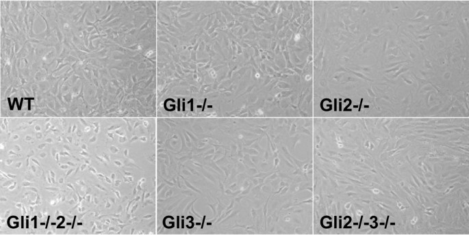 Hedgehog(Hh)信号通路是进化保守的形态发生调控通路,1990年代其配体-受体互作机制被首次鉴定,后续研究证实该通路在胚胎发育、组织修复及肿瘤发生中发挥核心作用。领域共识:Gli家族转录因子(Gli1、Gli2、Gli3)是Hh通路下游的核心调控分子,其中Gli2为通路主要激活因子,Gli3主要发挥转录抑制作用,Gli1功能可被其他家族成员代偿。当前研究热点聚焦于Hh通路的转录与非转录调控机制,但原代小鼠胚胎成纤维细胞(MEF)因有限传代能力,无法满足长期、重复的功能学实验需求,成为领域研究的核心限制之一。本研究针对这一空白,建立了一系列永生化Gli基因敲除MEF细胞系,为深入解析Gli家族蛋白在Hh通路中的功能提供了稳定的实验模型。