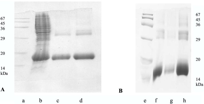 SDS-PAGE分析结果显示,野生型六聚组氨酸-半乳糖凝集素-1的分子量约为16 kDa,部分样本中存在约32 kDa的二聚体条带,与此前GST融合蛋白的实验结果一致;部分突变体(如R49G、D47N)的可溶性蛋白表达量较低,且易在表达后形成沉淀;野生型蛋白无需切割即可保留完整的血凝活性(终点滴度为1 μg/ml)和细胞生长抑制活性(50%生长抑制浓度I₅₀=5 μg/ml),活性显著优于此前的GST融合蛋白系统。实验所用关键产品:ProEX表达系统、Ni-NDA-琼脂糖亲和层析柱,分子生物学试剂购自Gibco-BRL,其他常规试剂购自Sigma。