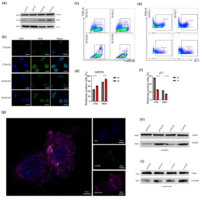 实验目的:明确GSDME导致线粒体损伤的具体机制,验证IFNβ在GSDME招募CD8+T细胞过程中的关键作用。方法细节:采用荧光探针检测细胞内活性氧(ROS)、线粒体活性氧(mtROS)水平及线粒体膜电位(MMP);通过免疫荧光染色观察N-GSDME与线粒体的共定位,采用蛋白免疫印迹检测线粒体组分中N-GSDME的表达;采用Transwell迁移实验检测GSDME过表达细胞培养上清对CD8+T细胞迁移的影响,加入IFNβ抑制剂验证IFNβ的作用。结果解读:GSDME过表达后,细胞内ROS、mtROS水平显著升高(P<0.0001),MMP显著降低(P<0.0001),提示线粒体发生损伤;免疫荧光染色显示N-GSDME与线粒体共定位,线粒体组分中N-GSDME的蛋白水平显著上调;Transwell实验显示,GSDME过表达细胞的培养上清能显著促进CD8+T细胞迁移,加入IFNβ抑制剂后迁移能力被显著逆转(P<0.01),且分泌IL2、TNFα等功能分子的CD8+T细胞的迁移也依赖于IFNβ的作用。文献未提及具体实验产品,领域常规使用ROS检测试剂盒、线粒体染色试剂、Transwell小室类产品。