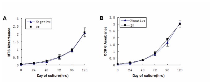实验目的是排除mRHBDD1敲低对细胞增殖的影响,明确凋亡敏感性变化的特异性。方法为将敲低细胞和阴性对照细胞以1000个/孔的密度接种于96孔板,分别采用MTS实验(Promega)和CCK-8实验(Dojindo Molecular Technologies)连续5天检测细胞增殖水平。结果显示,两组细胞的增殖能力无显著差异(n=3,P>0.05,文献未明确具体数值,基于图表趋势推测),提示mRHBDD1敲低仅影响精原细胞的凋亡敏感性,不改变其体外增殖能力。实验所用关键产品:MTS试剂盒(Promega)、CCK-8试剂盒(Dojindo Molecular Technologies)。