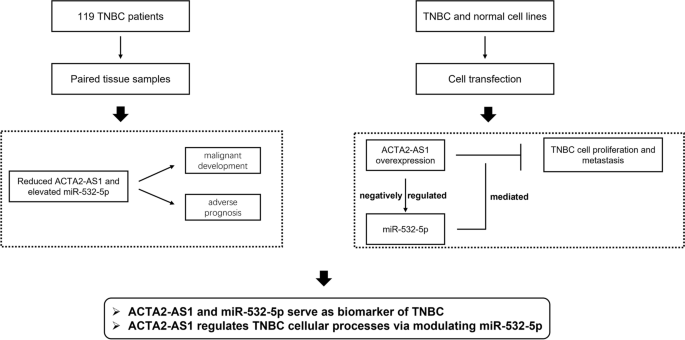 本研究整体遵循“临床样本验证-临床关联分析-细胞功能验证-机制阐释”的闭环研究逻辑,核心目标是明确ACTA2-AS1和miR-532-5p在三阴性乳腺癌中的生物标志物潜力及调控机制,核心科学问题为ACTA2-AS1是否通过靶向miR-532-5p调控三阴性乳腺癌细胞的恶性生物学行为。