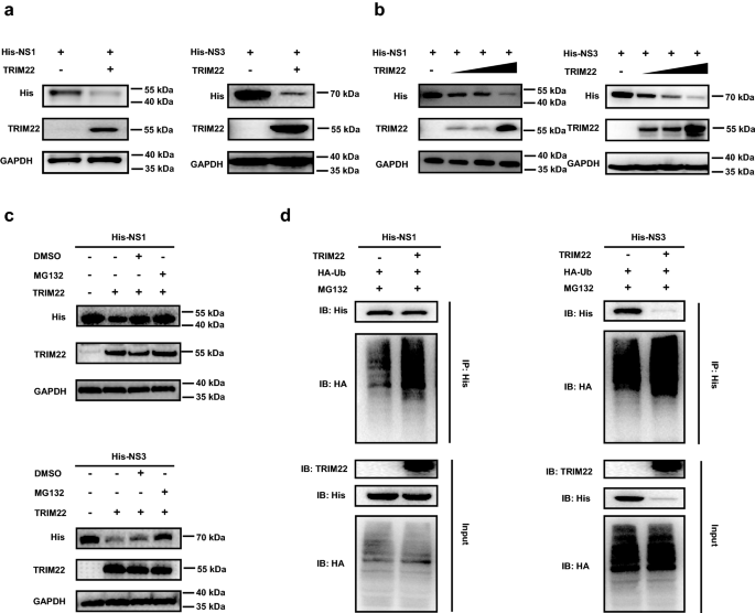 3.4 TRIM22介导NS1和NS3的蛋白酶体降解机制验证