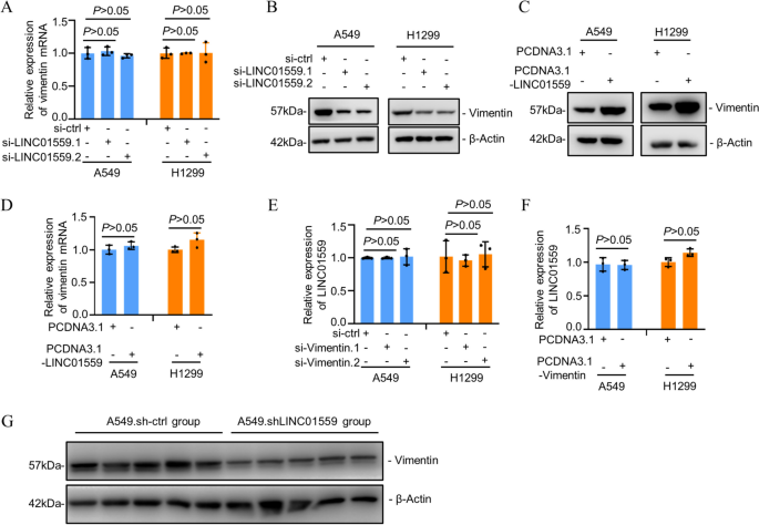 实验目的:明确波形蛋白是否为LINC01559调控肺腺癌转移的下游效应分子。