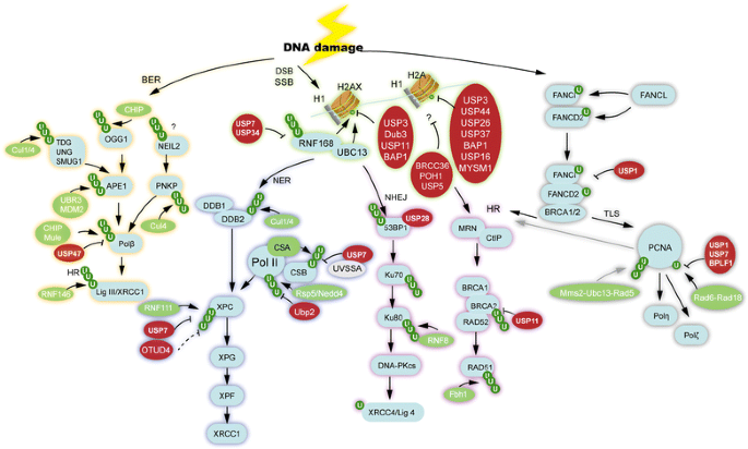 实验目的:总结DUBs在不同DNA损伤修复通路中的调控作用。