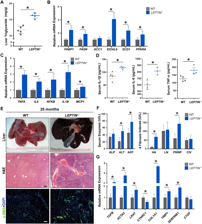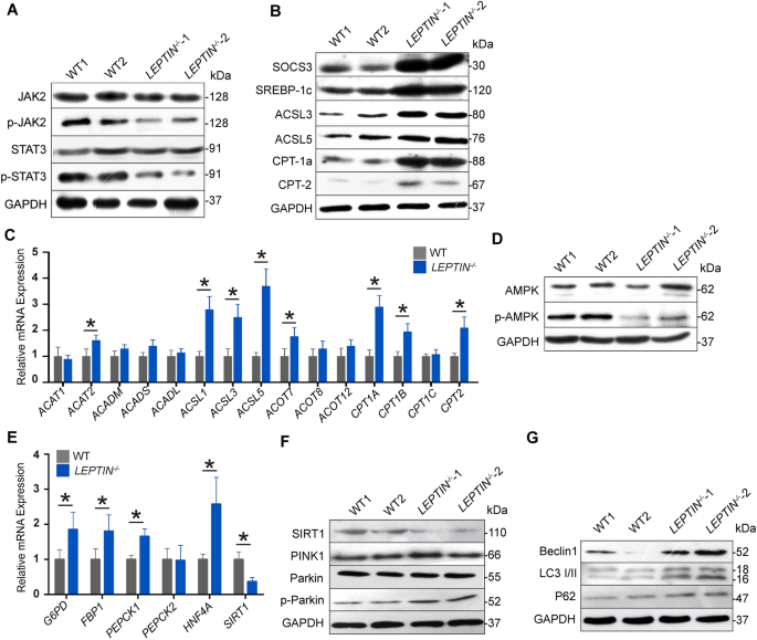 实验目的:解析Leptin缺失通过JAK2-STAT3和AMPK通路调控肝纤维化的分子机制,明确氧化应激和线粒体自噬的作用。