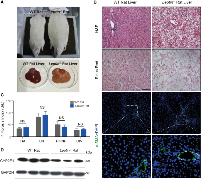 实验目的:对比猪与大鼠Leptin缺陷模型的肝脏病理变化及通路差异,明确AMPK通路调控肝纤维化的物种特异性。