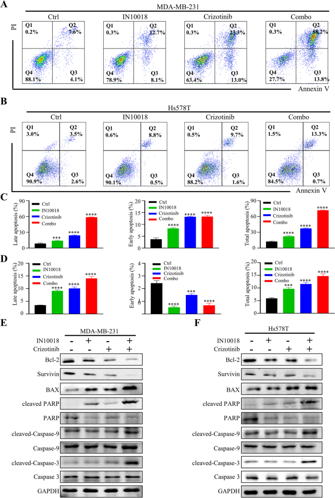 本环节的核心目标是验证IN10018与克唑替尼联合对TNBC细胞的增殖抑制、细胞周期阻滞与凋亡诱导作用,明确二者的协同效应。