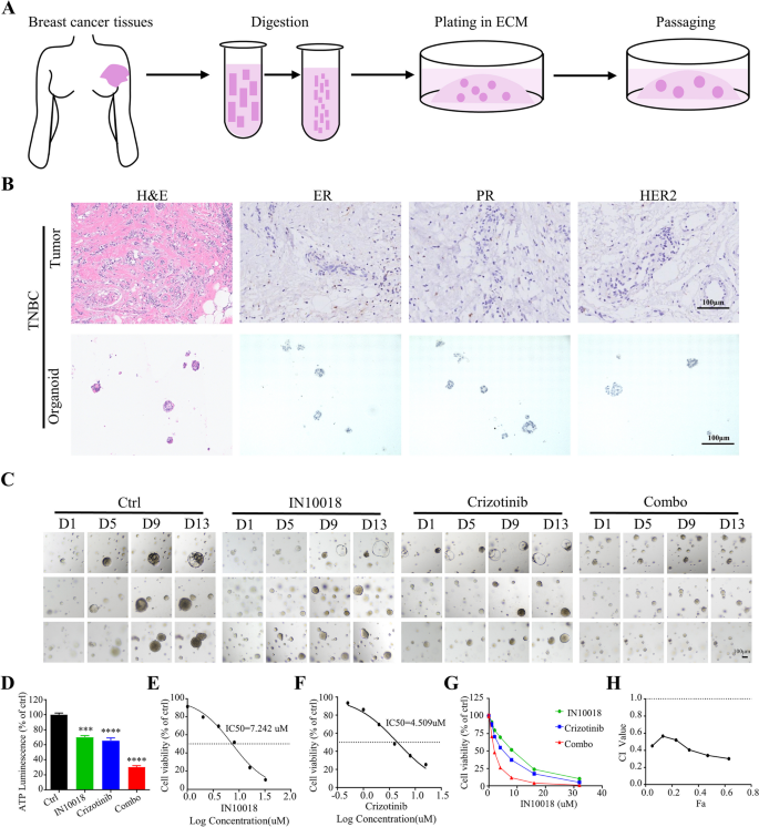 本环节的核心目标是验证IN10018与克唑替尼联合治疗在体内的抗肿瘤效果,以及在人TNBC类器官模型中的临床转化潜力。