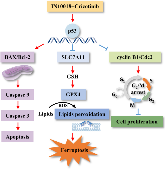 本环节的核心目标是阐明IN10018与克唑替尼联合治疗的分子机制,尤其是p53在诱导铁死亡中的作用。