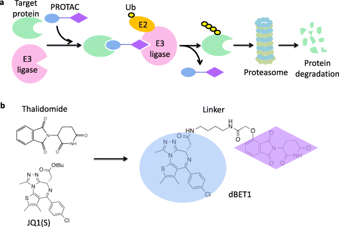 本环节的核心目的是总结基于IMiDs的PROTAC药物设计策略及其临床应用前景。研究方法整合了PROTAC分子的结构设计、临床前活性研究及已进入临床的候选药物数据。结果显示,PROTAC分子通过连接E3连接酶配体(如IMiDs)与目标蛋白配体,可将目标蛋白招募至CRL4^CRBN复合物进行泛素化降解,已成功靶向BRD4、BCR-ABL、BTK等多个致癌蛋白;基于IMiDs的PROTAC分子dBET1可诱导BRD4降解,下调MYC表达,对急性髓系白血病细胞具有显著细胞毒性;ARV-110作为靶向雄激素受体的PROTAC药物,已进入I期临床研究,用于治疗转移性去势抵抗性前列腺癌。PROTAC技术的优势在于无需占据目标蛋白的活性位点,可靶向不可成药蛋白,且具有循环利用的特点,理论上具有更高的效率与更低的脱靶效应。