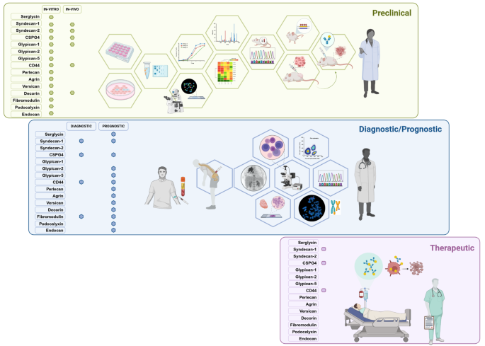本文献作为综述性研究,整体目标是系统阐述造血蛋白聚糖组在正常与恶性造血中的生物学与病理意义,核心科学问题是明确蛋白聚糖在血液肿瘤中的异常表达模式、调控机制及临床转化潜力,技术路线逻辑为“蛋白聚糖基础分类与正常功能→不同血液肿瘤中异常表达与功能→预后价值分析→临床靶向治疗前景”的递进式框架。