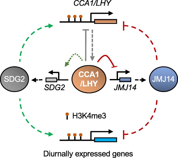 生物钟是生物适应地球昼夜周期的保守调控系统,通过转录-翻译反馈环路协调生理和发育过程,从原核生物到高等动植物均广泛存在。在植物中,核心生物钟环路由早晨相转录因子CIRCADIAN CLOCK ASSOCIATED 1(CCA1)、LATE ELONGATED HYPOCOTYL(LHY)和傍晚相调控因子timing of CAB expression 1(TOC1)等组成,形成互作反馈网络。近年来的研究发现,组蛋白修饰(如组蛋白H3第4位赖氨酸三甲基化H3K4me3、组蛋白H3第9位赖氨酸乙酰化H3K9ac)参与生物钟基因的表达调控,但组蛋白修饰的节律性调控机制,以及生物钟与组蛋白修饰酶之间的双向调控关系尚未明确,这是领域内的核心未解决问题。