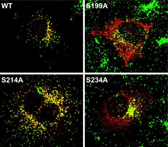 结果解读:酶活性检测结果显示,S214A突变体保留约31%的野生型酶活性(n=3,文献未明确提供P值),而S199A、S234A及双突变体的酶活性仅为野生型的1%-5%(n=3,文献未明确提供P值),提示N197和N232位点的糖基化对PPT1的酶活性至关重要,而N212位点的糖基化影响较小。代谢标记与免疫沉淀结果显示,野生型PPT1在细胞内和培养基中均呈现36/38 kDa的成熟形式,S199A和S234A突变体主要滞留在内质网中,无法分泌至培养基,而S214A突变体可正常分泌至培养基。免疫荧光结果显示,S214A突变体可与LAMP-1共定位于溶酶体,S199A突变体与PDI共定位于内质网,S234A突变体部分定位于溶酶体、部分滞留于内质网,进一步证实N197和N232位点的糖基化是PPT1正确转运至溶酶体的必要条件。