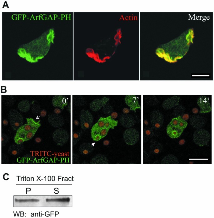 方法细节:构建绿色荧光蛋白-ADP核糖基化因子GTP酶激活蛋白-普列克底物同源性结构域融合蛋白表达载体,转化AX2细胞;通过活细胞成像与免疫荧光染色分析其亚细胞定位;采用谷胱甘肽S-转移酶下拉实验分析其与GxcDD的相互作用;通过点印迹实验检测其与磷脂的结合能力。