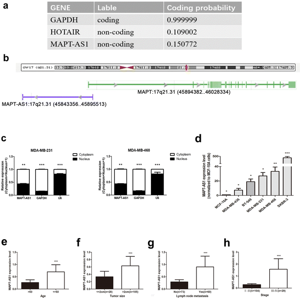 实验目的:明确MAPT-AS1的分子特征及与ER阴性乳腺癌临床病理特征的相关性。