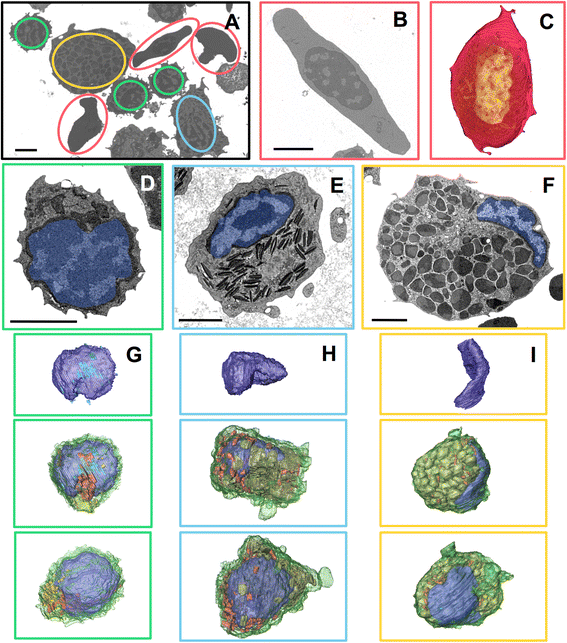 方法细节:将斑马鱼脾脏分离的免疫细胞样本包埋在环氧树脂中,制备连续切片阵列,使用ZEISS Crossbeam 540场发射扫描电镜,结合Atlas 5 Array Tomography平台,先以1000nm像素分辨率成像整个切片阵列,确定样本区域;再以60nm像素分辨率成像样本的完整区域,筛选感兴趣细胞;最后以5nm像素分辨率成像目标细胞的特定区域。