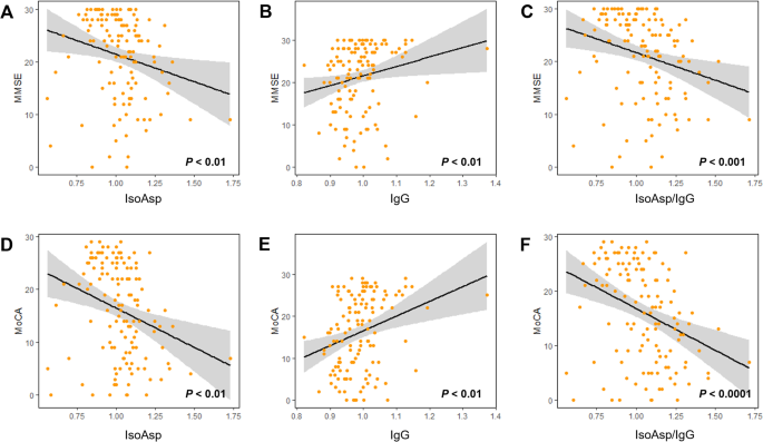 核心成果提炼:该类Biomarker的功能关联为脱酰胺化导致HSA清除Aβ、p-tau的能力下降,促进脑内病理蛋白聚集,且Biomarker水平与认知衰退显著相关(如IsoAsp/IgG比值与MMSE评分负相关,n=140,P<0.01);创新性在于首次在亚洲人群中验证脱酰胺化生物标志物对多种NDDs的诊断价值,且在MCI早期诊断中的性能显著优于现有常用血液标志物,为NDDs早期诊断提供了新的候选标志物。研究样本量为140名受试者,关键统计学结果包括AD患者isoAsp水平升高9%(n=60,P<0.0001)、MCI与健康对照区分的AUC达0.92等,数据准确可靠。