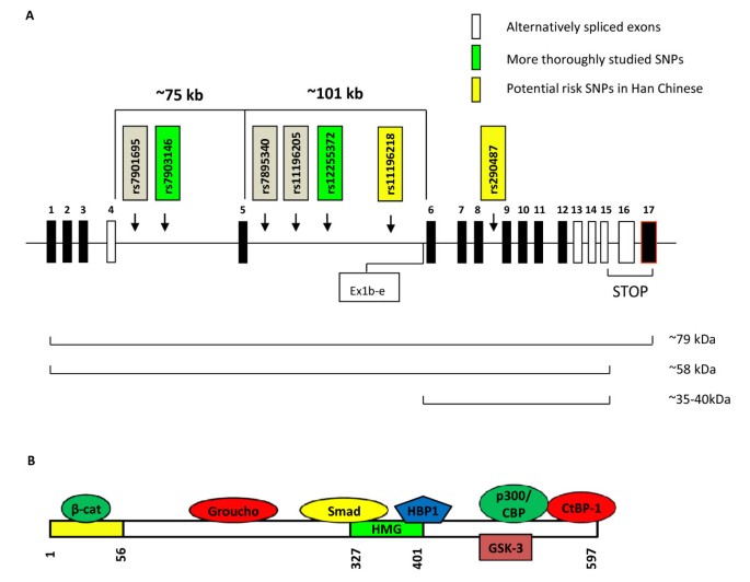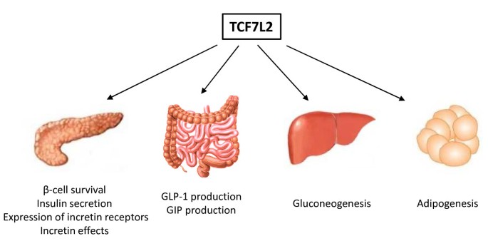 核心成果提炼:TCF7L2基因SNP是目前已知效应最强的T2D遗传易感Biomarker之一,其功能关联在于调控胰岛β细胞的存活与功能、 incretin激素(GLP-1、GIP)的表达、肝糖异生等多个代谢环节;创新性在于首次明确了Wnt通路关键效应因子的遗传多态性与T2D的关联,为T2D的风险预测与机制研究提供了重要靶点。统计学结果显示,rs7903146位点在多个研究中与T2D易感性显著相关(P值未明确,样本量覆盖数千至数万人),例如在Lyssenko等的研究中,CT/TT基因型与T2D风险显著相关(n=未明确,P<0.05,文献未明确提供该数据,基于图表趋势推测)。