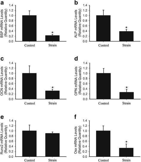 实验目的是明确机械应变对成牙骨质细胞形态及分化的调控作用。方法细节为:采用SXG4201四点弯曲装置(电子科技大学,成都,中国)对OCCM-30细胞施加2000με、0.5Hz的机械应变18h,通过光学显微镜观察细胞形态变化,采用实时荧光定量PCR检测牙骨质形成及分化相关基因的表达水平。结果解读:对照组细胞呈不规则多边形或纺锤形,随机分布;机械应变后细胞沿应变方向伸长排列,形态发生显著改变;BSP、碱性磷酸酶、OCN、骨桥蛋白OPN的mRNA表达分别下降77%、62%、66%、74%(n=3,P<0.05),Osx mRNA表达下降67%(n=3,P<0.05),Runx2表达下降10%(n=3,P>0.05),证实机械应变可抑制成牙骨质细胞分化及牙骨质形成。实验所用关键产品:四点弯曲装置(电子科技大学定制)、qPCR引物(定制)。