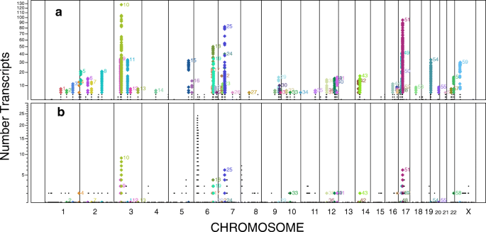 实验目的是获取超大样本量的全血基因表达、基因型及临床表型数据,为eQTL分析提供基础。方法细节上,研究样本来自Framingham心脏研究的两个队列:Offspring队列(2770人,2005-2008年随访)和Third Generation队列(3341人,2006-2009年随访),最终纳入5257名具有完整基因表达、基因型数据的受试者;采用PAXgene™血液RNA采集管收集空腹外周全血,室温孵育4小时稳定RNA后-80℃保存,由Asuragen公司自动化提取总RNA;基因表达检测采用Affymetrix Human Exon 1.0 ST微阵列平台,可同时检测转录簇及单个外显子的表达水平;基因型检测采用Affymetrix 500K和MIPS 50K平台,随后以1000 Genomes项目的“cosmopolitan”SNP集为参考,通过Minimac软件进行基因型填充,最终得到8510936个符合质量标准(填充质量R²≥0.3、次要等位基因频率MAF≥0.01)的SNP用于后续分析。结果解读显示,本研究的样本量为当时单队列eQTL研究之最,覆盖了更全面的基因组变异与转录组信息,为高灵敏度的eQTL检测提供了保障。实验所用关键产品:PAXgene™血液RNA采集管(PreAnalytiX)、Affymetrix Human Exon 1.0 ST微阵列、Affymetrix 500K和MIPS 50K基因分型平台。