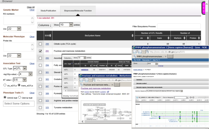 实验目的是解析eQTL与GWAS关联表型的关联,构建可公开访问的eQTL数据库。方法细节上,将本研究的显著eQTL与NHGRI-EBI GWAS Catalog中P<5E-8的SNP进行比对,计算重叠比例;针对冠心病(CAD/MI)GWAS meta-analysis鉴定的58个位点,分析其对应的eQTL靶基因;构建NCBI Molecular QTL Browser数据库,将eQTL结果与其他研究资源整合,支持用户自定义筛选与查询。结果解读显示,48%的GWAS显著SNP在本研究中为显著eQTL,是随机预期的2倍;在58个CAD/MI GWAS位点中,21个位点存在cis-eQTL靶向34个基因,4个位点存在trans-eQTL靶向24个基因,例如LIPA基因的cis-eQTL可通过影响胆固醇酯水解参与CAD发病机制,SH2B3位点的trans-eQTL可调控干扰素信号通路基因表达;构建的数据库可通过https://preview.ncbi.nlm.nih.gov/gap/eqtl/studies/访问,为全球研究者提供eQTL查询与分析工具。