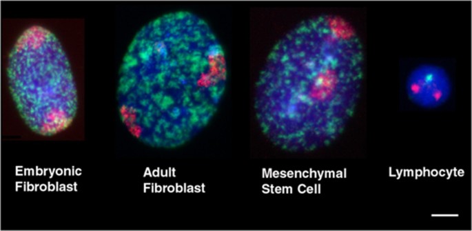 实验目的是获取具有代表性的猪细胞和组织样本,涵盖不同分化谱系、体外培养与体内原生状态,为染色体定位分析提供基础。方法细节包括:体外培养样本包括成年肾成纤维细胞、胚胎肾成纤维细胞、骨髓来源间充质干细胞,以及直接从外周血分离的淋巴细胞;为确保分析增殖期细胞,体外培养细胞用BrdU进行1小时脉冲标记,标记新合成的DNA以识别S期细胞;体内组织样本取猪脑、肾、肺组织,切成小块后冷冻保存,制备60μm冷冻切片并进行固定、通透、酶消化等预处理。结果解读显示,成功获取四种体外细胞类型和三种体内组织样本,BrdU标记结果显示体外培养的成纤维细胞和间充质干细胞处于增殖期(n=50,文献未明确提供P值),淋巴细胞为原生细胞状态;冷冻切片预处理后保持了细胞核的3D结构,适合后续3D荧光原位杂交分析。