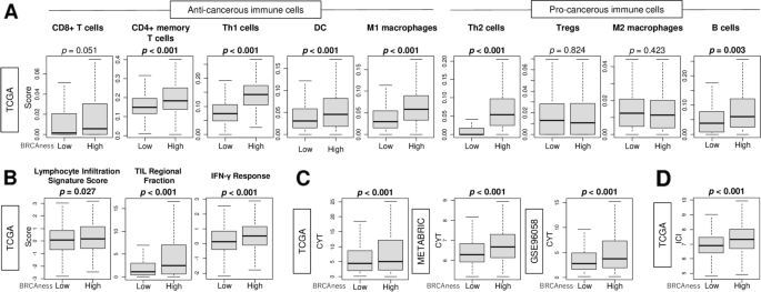 3.4 BRCAness评分与肿瘤免疫微环境的关联分析