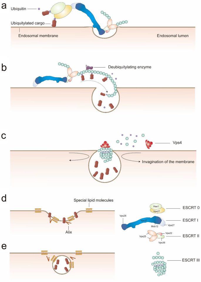 结果解读:EV的生物发生存在两种主要途径,ESCRT依赖途径通过ESCRT-0至ESCRT-III等一系列复合物介导泛素化蛋白分选,非依赖途径依赖神经酰胺、LBPA等脂质分子;TEM可观察到EV的杯状脂质双层结构,NTA可定量分析EV的粒径分布,四跨膜蛋白是EV的常用标记物但不具有亚型特异性。