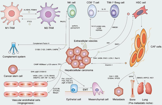 实验目的:系统梳理EV相关蛋白在肝癌细胞增殖、肿瘤微环境交互、血管生成、转移中的作用。