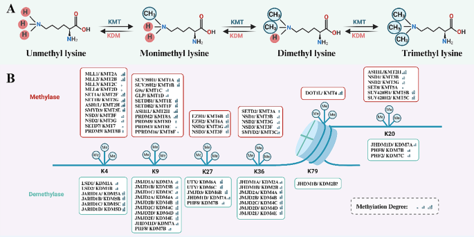 实验目的:系统阐述赖氨酸甲基化的生化过程、修饰类型及相关酶类的分类与功能,为后续免疫调控机制的解析奠定基础。