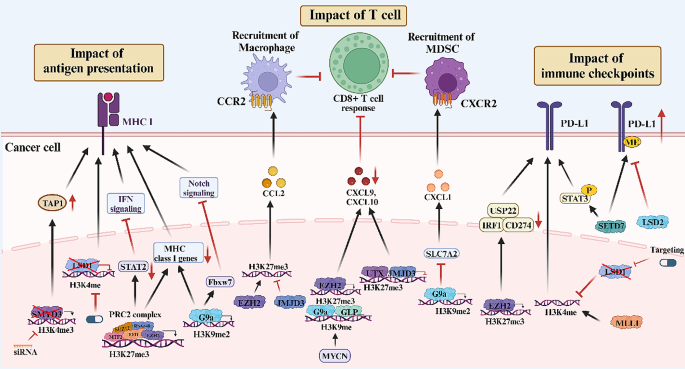 实验目的:系统阐述赖氨酸甲基化在肿瘤免疫逃逸三个关键环节(抗原呈递、T细胞招募、免疫检查点调控)中的作用机制,明确其在肿瘤免疫抑制中的核心地位。
