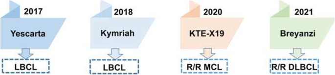 产品关联:文献提及的已获批CAR-T产品包括axicabtagene ciloleucel、tisagenlecleucel、brexucabtagene autoleucel、lisocabtagene maraleucel;文献未提及具体实验产品,领域常规使用流式细胞术检测CAR-T细胞表型与肿瘤细胞抗原表达,酶联免疫吸附试验(ELISA)检测血清细胞因子水平。