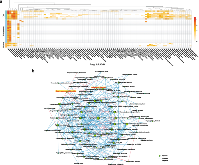 方法细节:对3例健康成人粪便样本同时进行2bRAD-M、16S rRNA扩增子测序和超深度WMS测序(平均4.37亿reads/样本),对比三类方法的分类结果;对20例腋下皮肤样本、5例汽车脚垫、3例汽车坐垫、4例家庭室内表面样本进行2bRAD-M和16S rRNA测序,分析微生物组组成差异;对粪便样本进行测序深度稀释分析,评估2bRAD-M的最优测序深度。