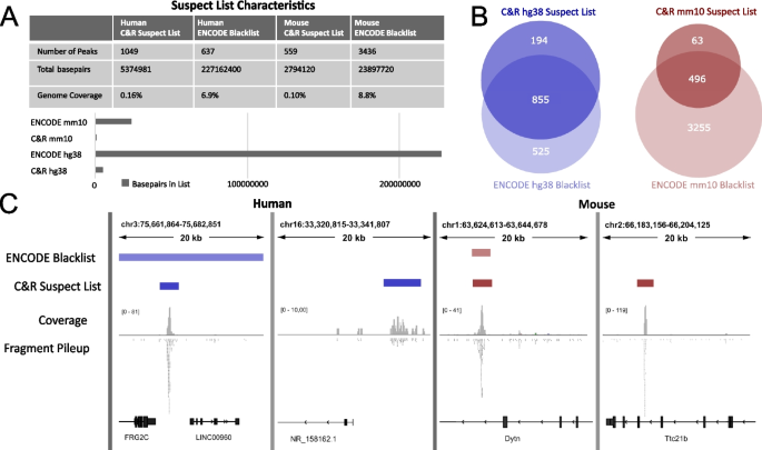 实验目的:明确CUT&RUN可疑列表与ChIP-seq ENCODE黑名单的差异,鉴定CUT&RUN技术特有的假阳性区域。