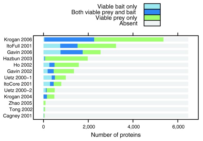 实验目的:评估高通量实验对酿酒酵母蛋白质相互作用组的覆盖偏差,明确不同技术的覆盖局限性。