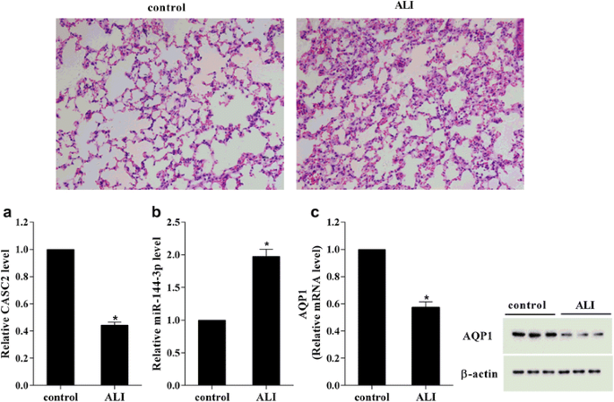 现有研究的关键结论包括,肺泡上皮细胞过度凋亡是ALI的核心发病机制之一,水通道蛋白1(AQP1)表达下调与ALI进展密切相关,miRNA在ALI的炎症反应和凋亡过程中具有重要调控作用。技术方法上,现有研究多采用LPS诱导的细胞和动物模型模拟ALI,该模型能较好地还原临床ALI的病理特征,具有较高的临床相关性,但部分研究存在样本量较小、仅关注单一分子调控的局限性,未系统阐明多分子构成的调控网络。本研究的创新价值在于,首次发现lncRNA CASC2可作为分子海绵吸附miR-144-3p,进而调控AQP1的表达,形成CASC2/miR-144-3p/AQP1调控轴,填补了该调控通路在ALI中的研究空白,为ALI的靶向治疗提供了新的潜在靶点。