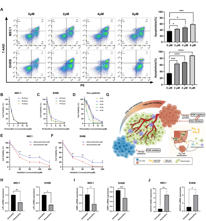 实验目的:探索FAO抑制与PI3K抑制剂idelalisib的协同抗肿瘤效果,为CLL的联合治疗提供实验依据。