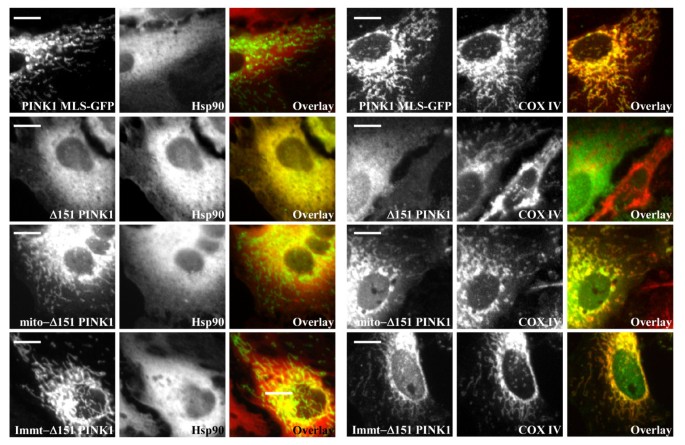 作者对领域内现有研究的分类维度包括:线粒体蛋白定位信号的类型、PINK1定位与功能的研究争议、PINK1剪切形式的相关报道。现有研究已证实PINK1的N端MLS足以介导线粒体靶向,过表达和内源性PINK1均存在多种剪切形式,部分研究显示PINK1参与线粒体裂变/融合及线粒体自噬过程,也有证据支持其胞质激酶功能,如胞质降解途径、结合胞质伴侣蛋白及神经保护作用;但现有研究存在明显局限性,多数依赖PINK1过表达系统,缺乏高特异性多用途PINK1抗体,内源性PINK1表达水平极低,且无法明确线粒体和胞质PINK1各自的功能贡献,也未阐明其双重定位的具体结构决定因素。本研究的创新价值在于首次系统解析了PINK1双重亚细胞定位的结构基础,明确了跨膜结构域、跨膜后的剪切位点及激酶结构域与热休克蛋白90(Hsp90)的相互作用是实现双重定位的关键,同时构建了可特异性消除胞质PINK1的突变体(Immt-Δ151 PINK1),弥补了现有研究对PINK1定位机制的空白,为后续功能研究提供了精准的实验模型。