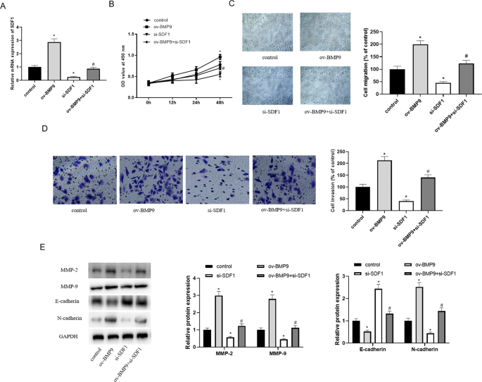 3.5 BMP9与SDF1/CXCR4通路的调控关系验证