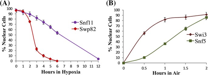 本研究中,SWI/SNF蛋白的核定位状态作为低氧应答的功能Biomarker,其筛选与验证遵循“全基因组筛选→时间动态验证→定量成像验证→靶基因关联”的完整逻辑链条。Biomarker定位:类型为“核蛋白亚细胞定位状态(Swi3、Snf5、Snf6等SWI/SNF复合物组分)”,筛选逻辑为基于全基因组核蛋白定位筛选,优先选择对低氧和复氧快速响应的蛋白,再通过共聚焦成像定量验证定位的氧依赖性,最后关联靶基因表达确认其功能价值。